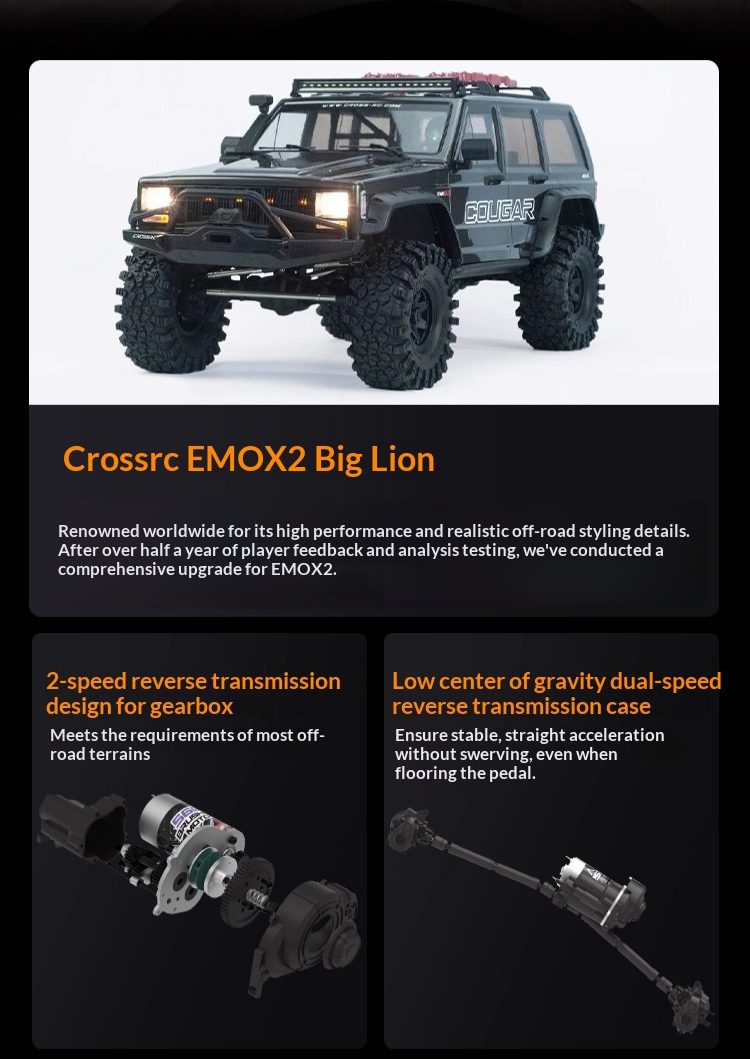 CROSSRC EMO X2 Lion Remote Control Car 1/8 Brushless 4WD Climbing Car High Low Speed Differential Lock Off Road Vehicle Model