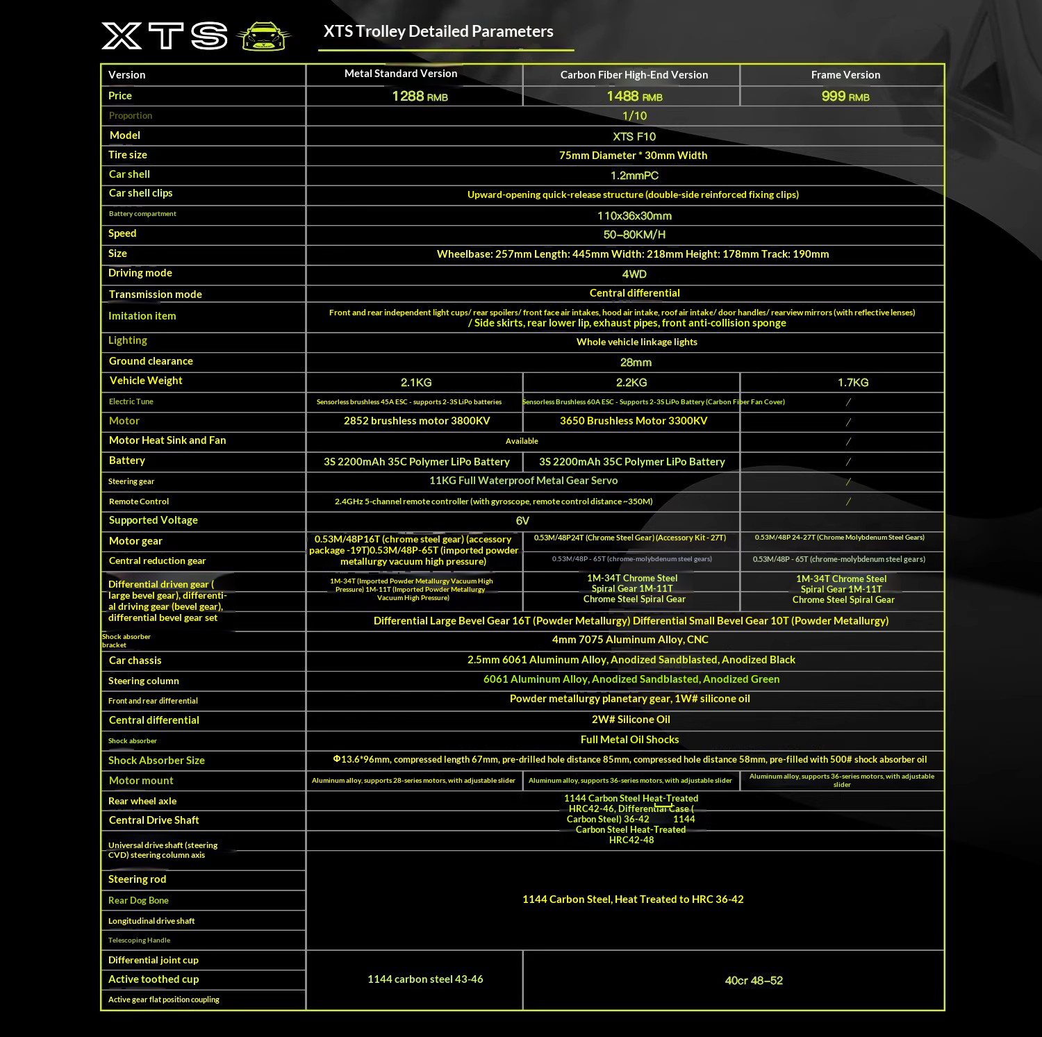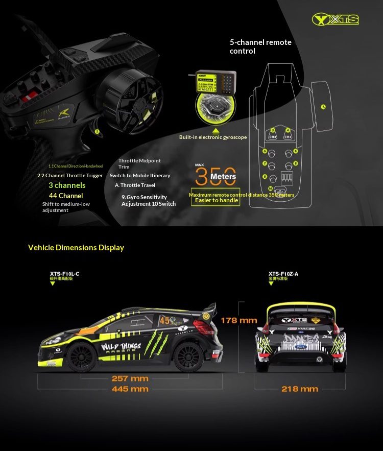 Rlaarlo Xts-F10 Professional 1:10 Scale RC Car Remote Control Drift Vehicle High-Speed Off-Road Toy Model for Entertainment